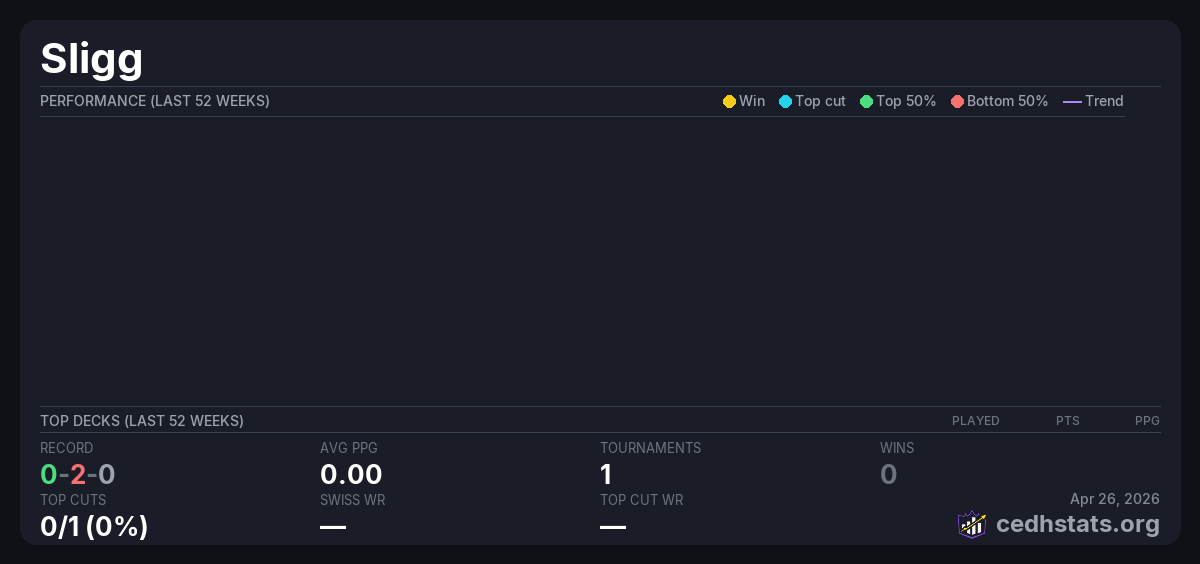 | Tournament | Deck | Result | Record | PPG | Points ? |