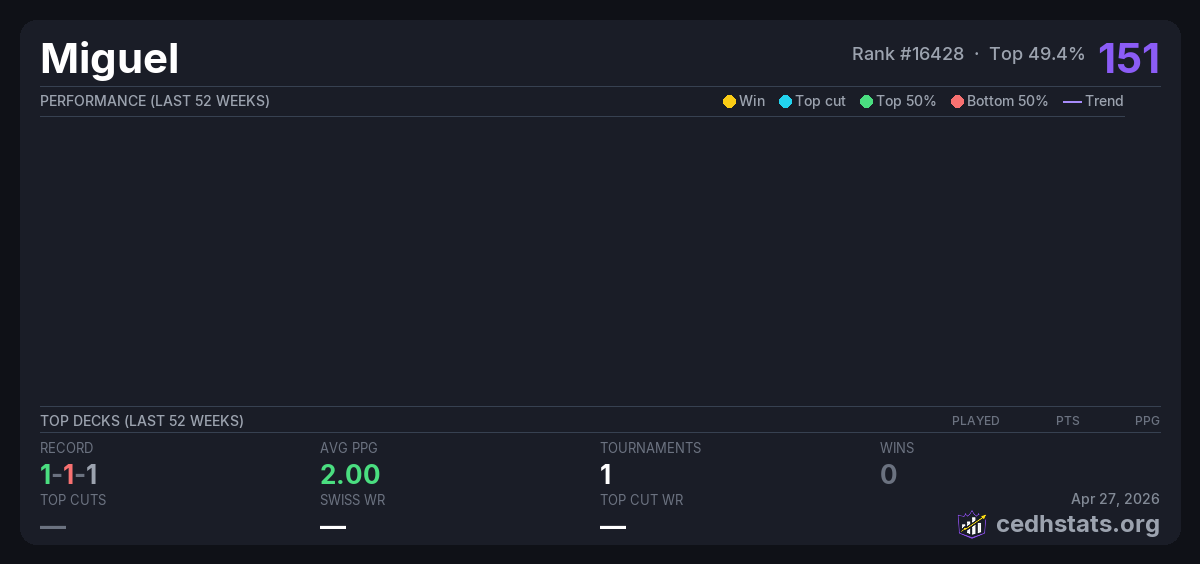| Tournament | Deck | Result | Record | PPG | Points ? |