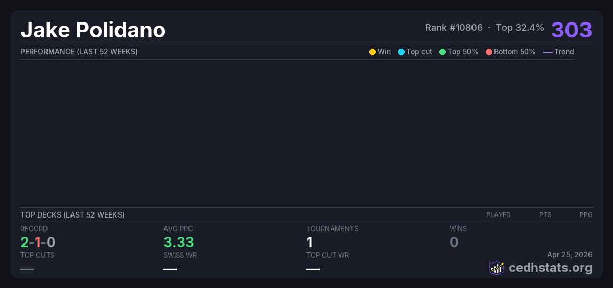 | Commander Weekly Wednesday 9/7/25 Jul 02, 2025 | — | 4/30 | 2-1-0 | 303 |