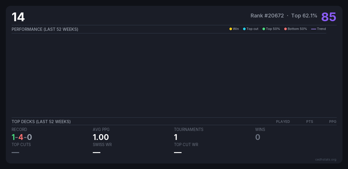 | Tournament | Deck | Result | Record | PPG | Points ? |