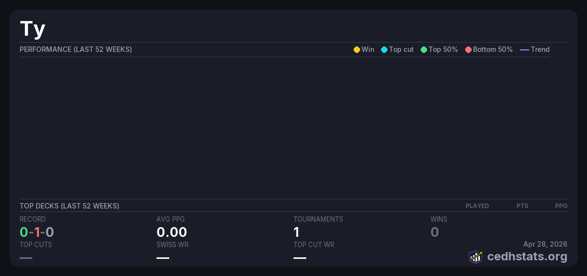 | Tournament | Deck | Result | Record | PPG | Points ? |