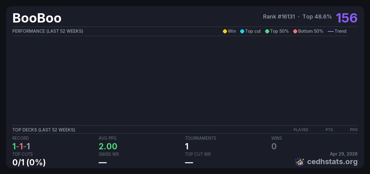 | Tournament | Deck | Result | Record | PPG | Points ? |