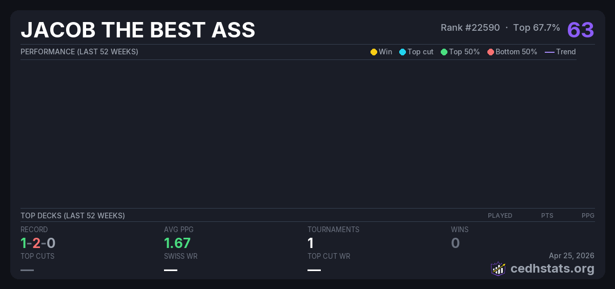 | FNM EDH 10-24-25 Oct 24, 2025 | Invalid pairing | 13/23 | 1-2-0 | 63 |