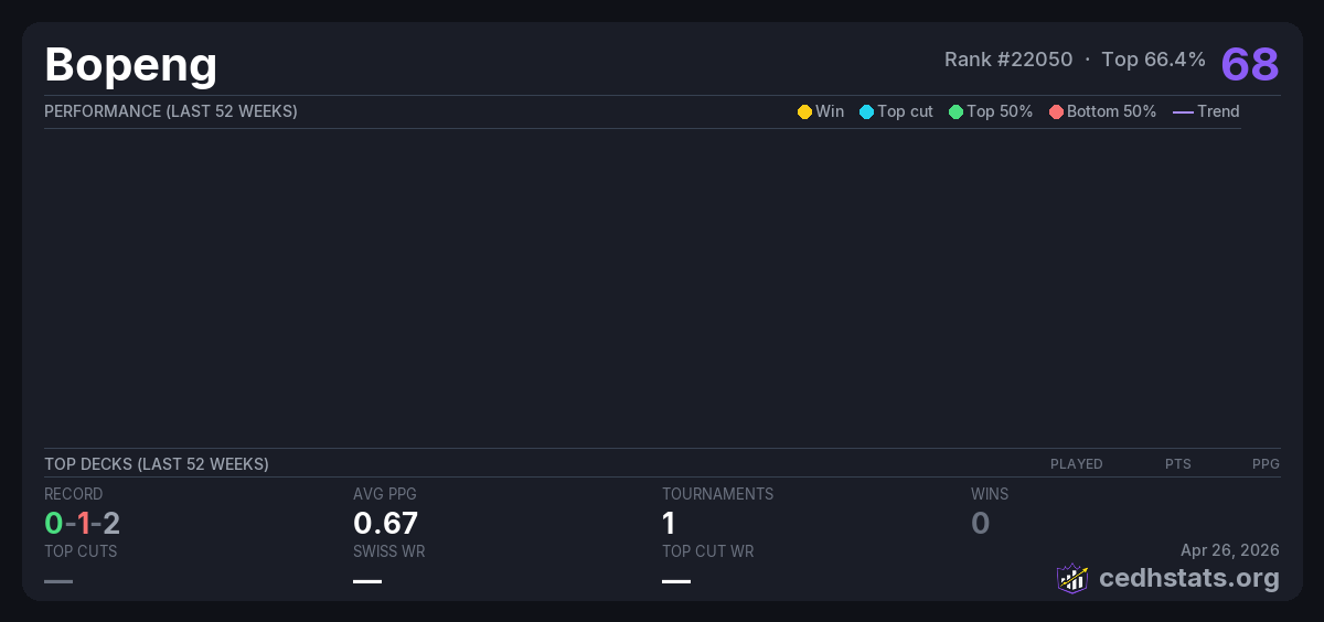 | Tournament | Deck | Result | Record | PPG | Points ? |