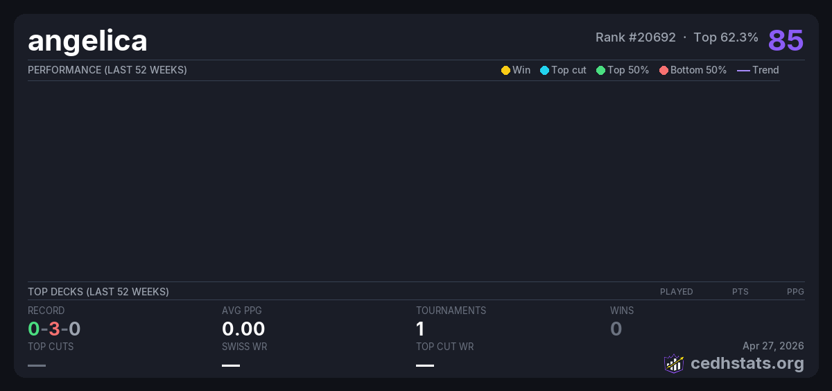 | Tournament | Deck | Result | Record | PPG | Points ? |