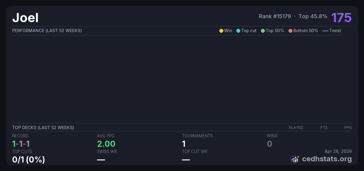 | Tournament | Deck | Result | Record | PPG | Points ? |