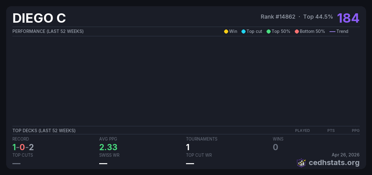 | P.A.R.A Oct 28, 2025 · 16 players | Invalid pairing | 2/16 | 1-0-2 | 2.33 | 184 |