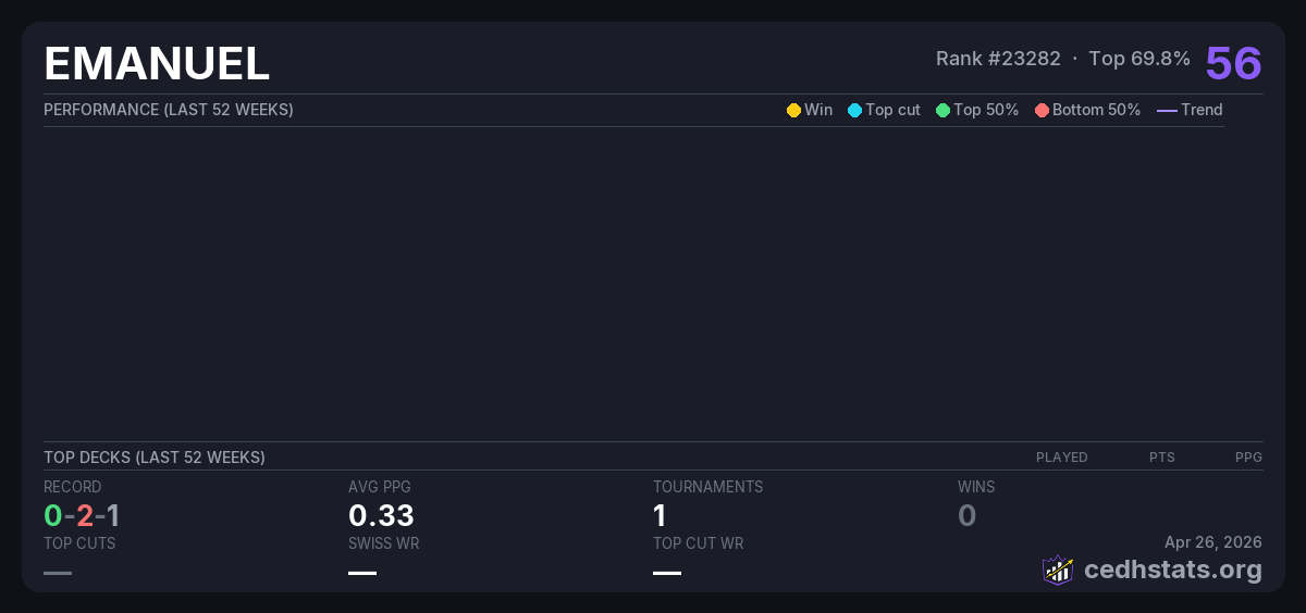 | Tournament | Deck | Result | Record | PPG | Points ? |