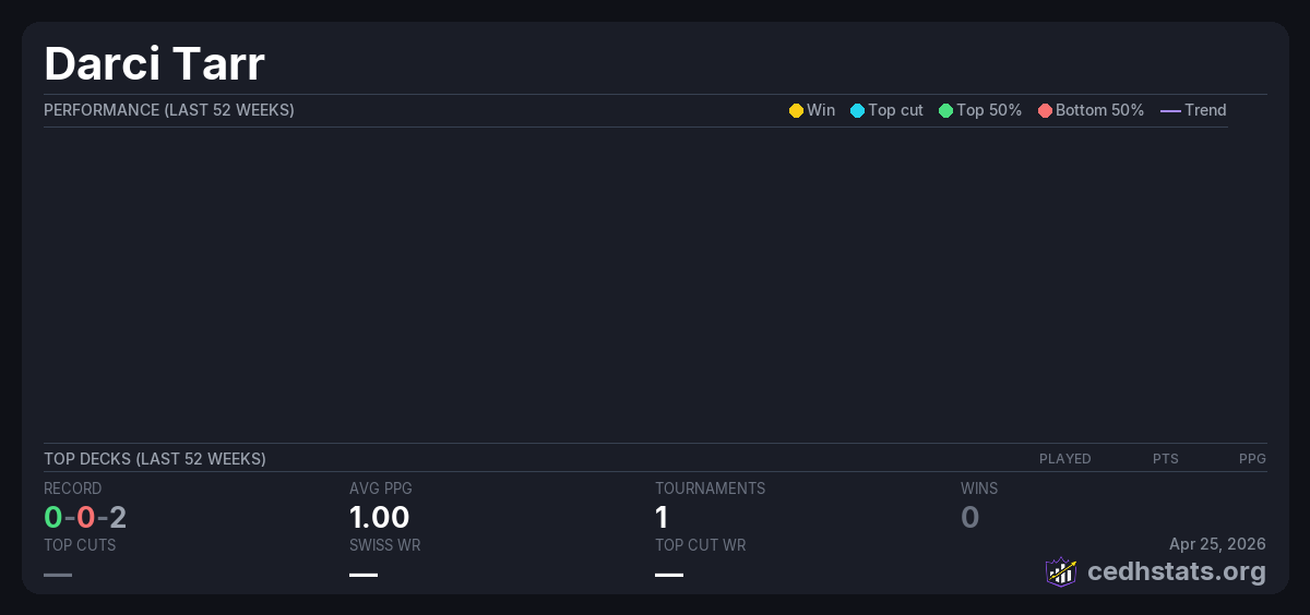 | Tournament | Deck | Result | Record | PPG | Points ? |