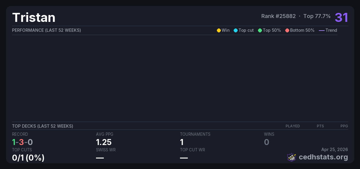 | IQ December Dec 13, 2025 · 26 players | 18/26 | 1-3-0 | 1.25 | 31 |