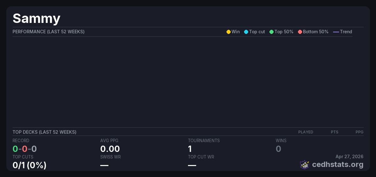 | Clash for the Cradle Sep 27, 2025 · 36 players | Invalid pairing | 36/36 | 0-0-0 | 0.00 | — |