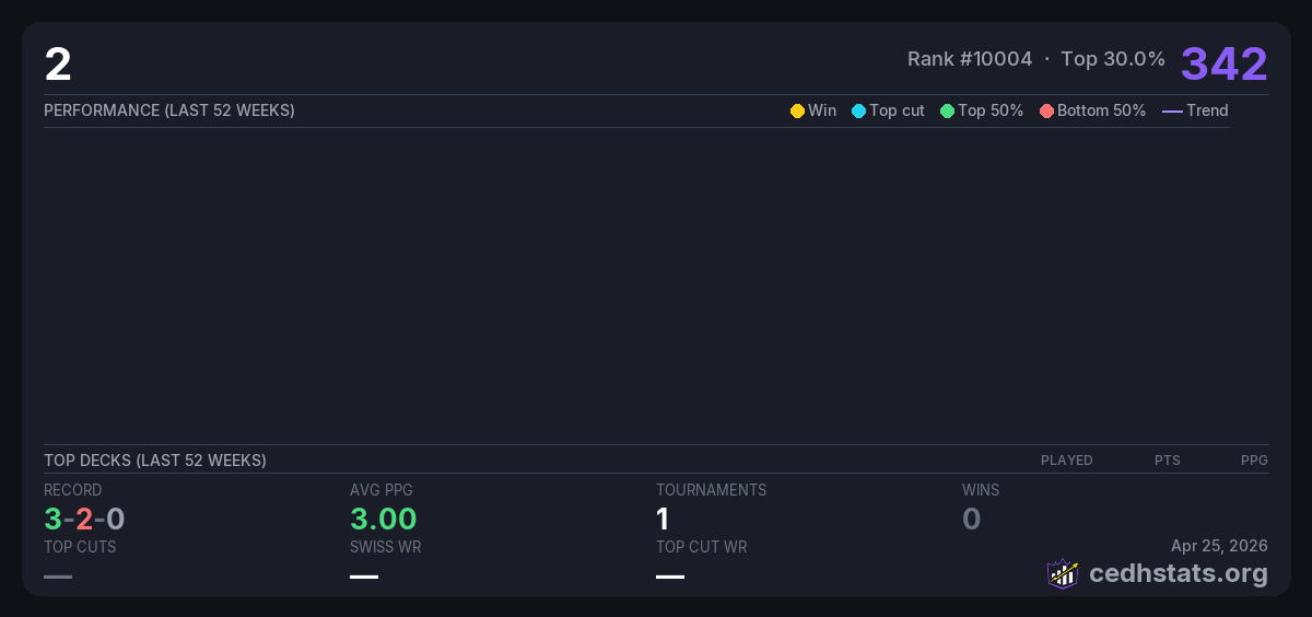 | Tournament | Deck | Result | Record | PPG | Points ? |