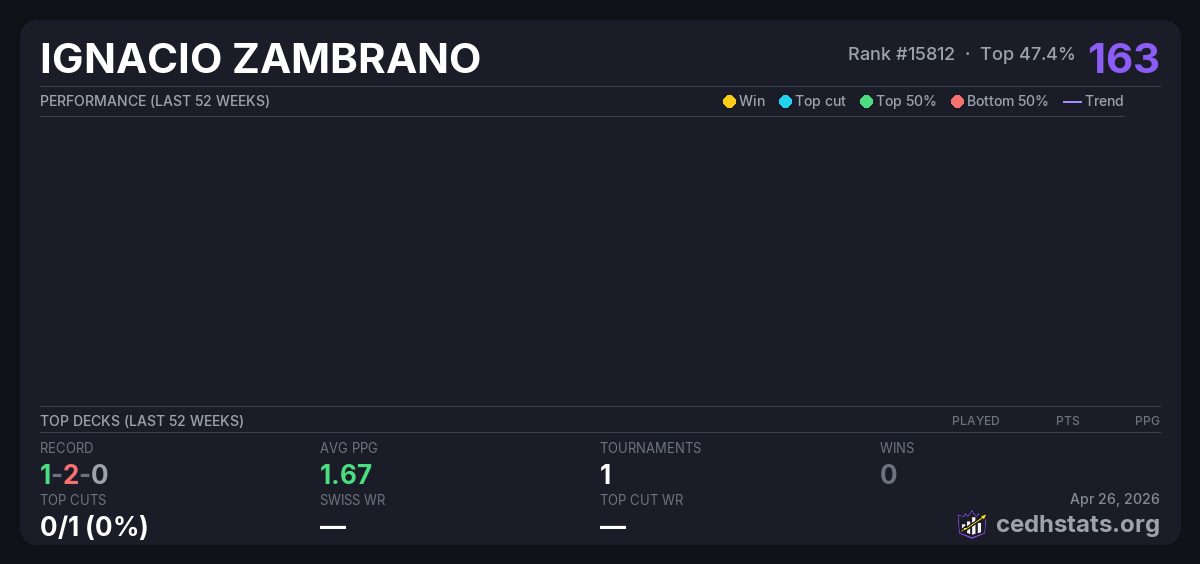 | CEDH HAMMER NOCTURNO Oct 18, 2025 | Invalid pairing | 5/22 | 1-2-0 | 163 |
