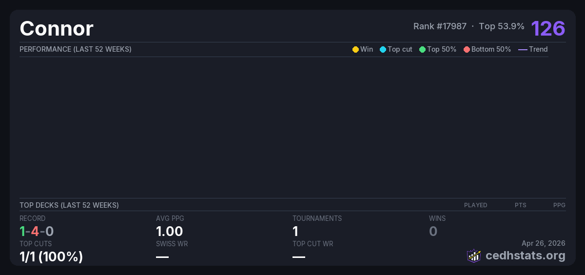 | Mono-color B3 Dec 07, 2025 · 16 players | 7/16 | 1-4-0 | 1.00 | 126 |