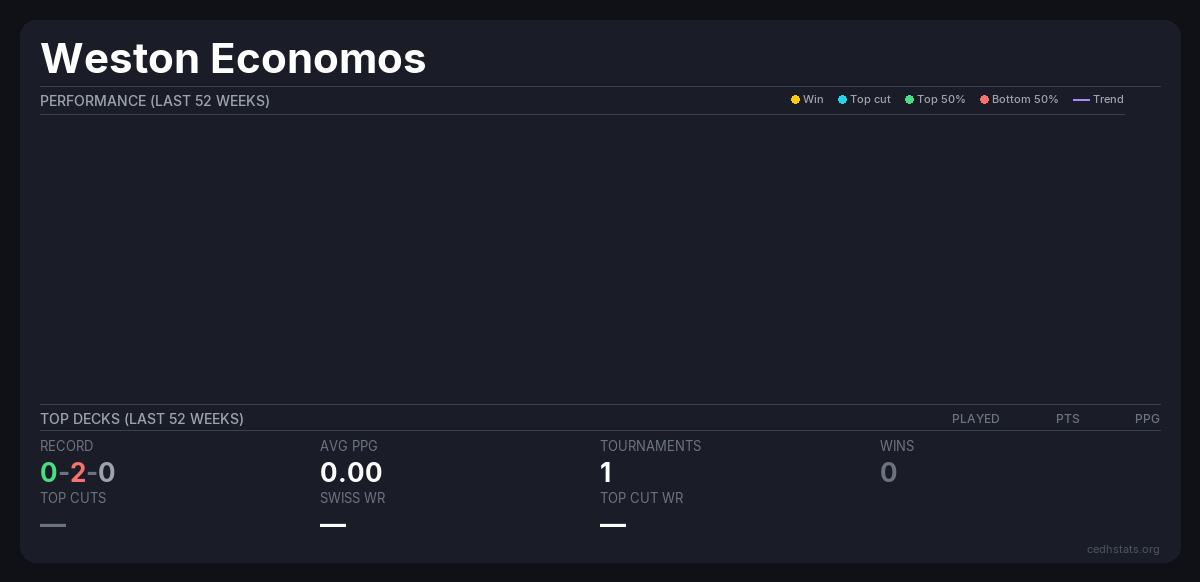 | Tournament | Deck | Result | Record | PPG | Points ? |