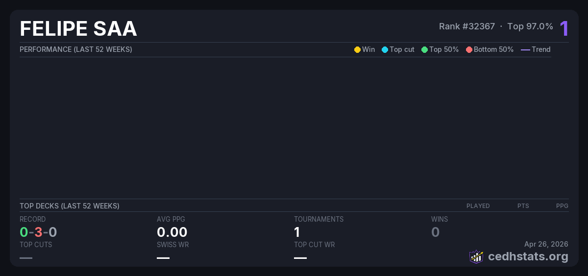 | CIDYHACHE Sep 11, 2025 · 16 players | Invalid pairing | 16/16 | 0-3-0 | 0.00 | 1 |
