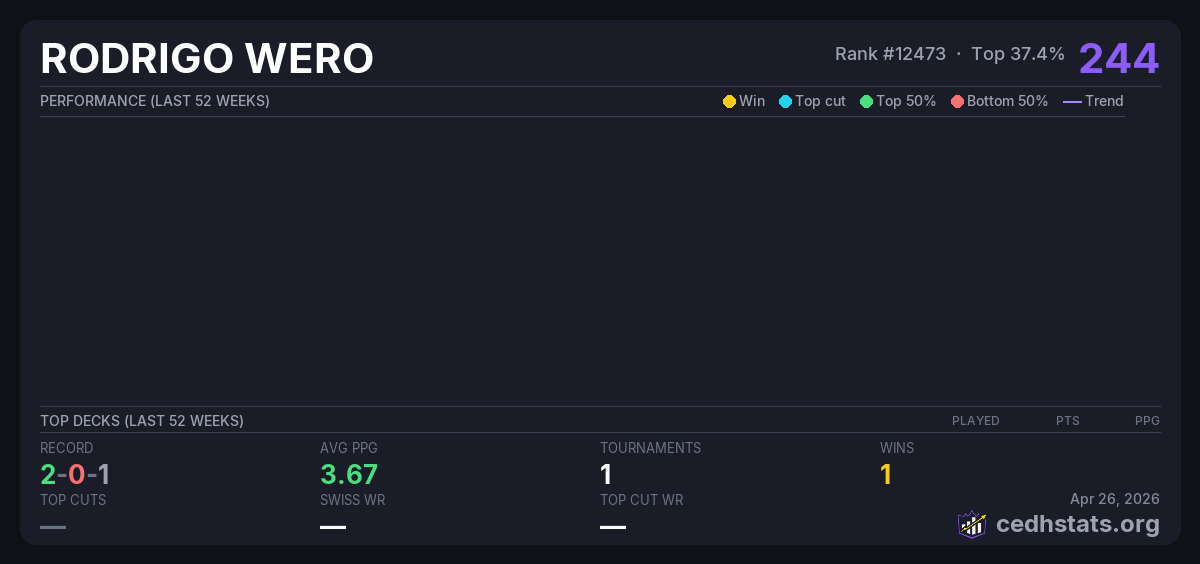 | CYDH May 22, 2025 · 20 players | Invalid pairing | 1/20 | 2-0-1 | 3.67 | 244 |