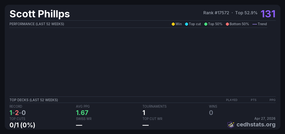 | Tournament | Deck | Result | Record | PPG | Points ? |