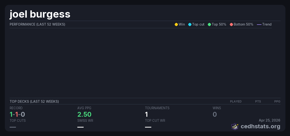 | Commander Wednesday Weekly Jan 07, 2026 · 41 players | 26/41 | 1-1-0 | 2.50 | — |