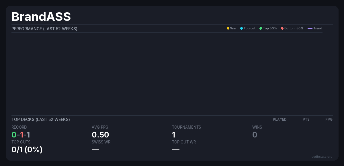 | Tournament | Deck | Result | Record | PPG | Points ? |