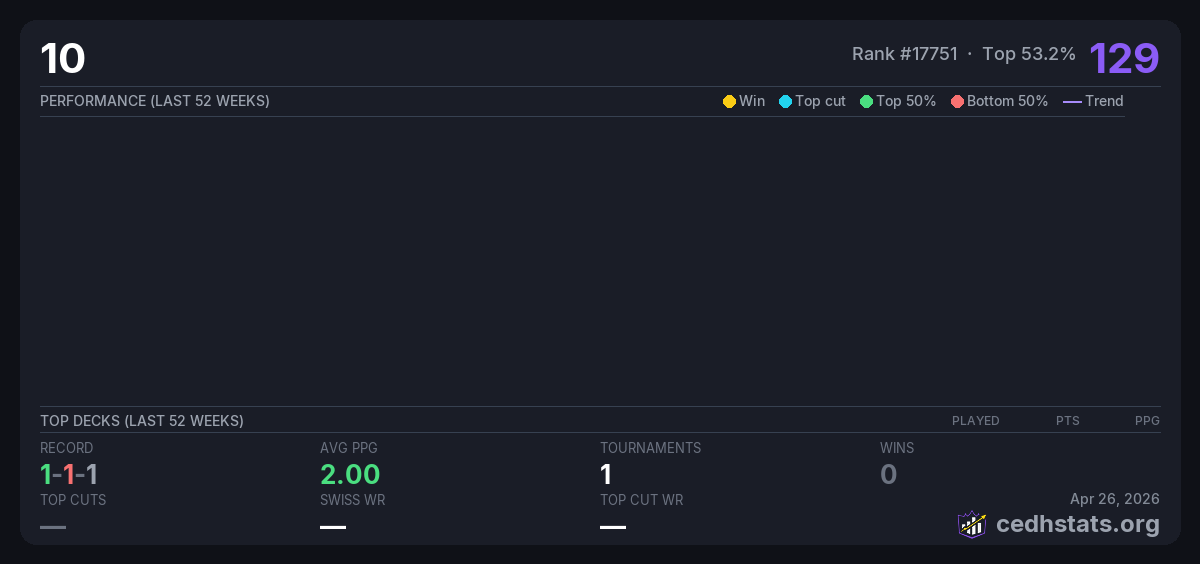 | Tournament | Deck | Result | Record | PPG | Points ? |