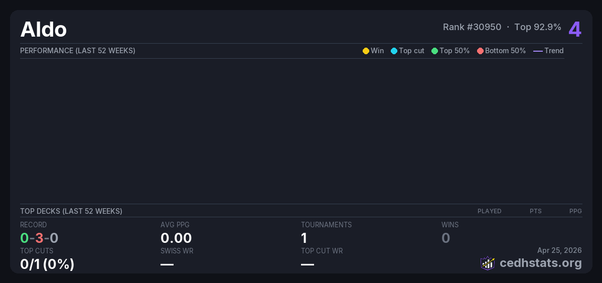 | Thirsty Thursday Oct 02, 2025 · 24 players | — | 22/24 | 0-3-0 | 0.00 | 4 |