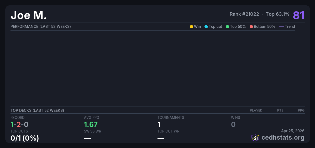 | Tournament | Deck | Result | Record | PPG | Points ? |