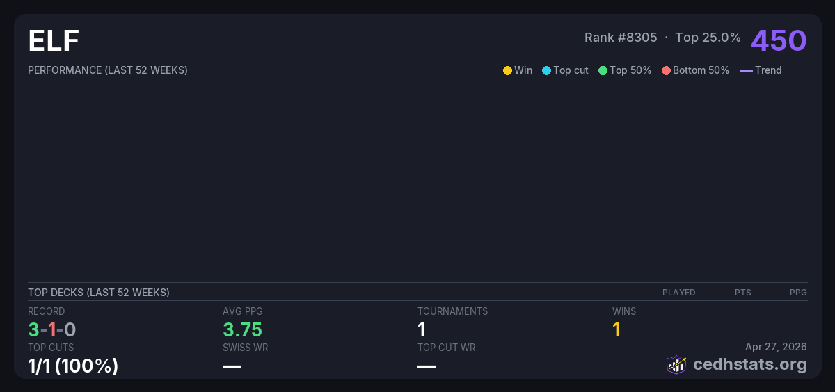 | Tournament | Deck | Result | Record | PPG | Points ? |