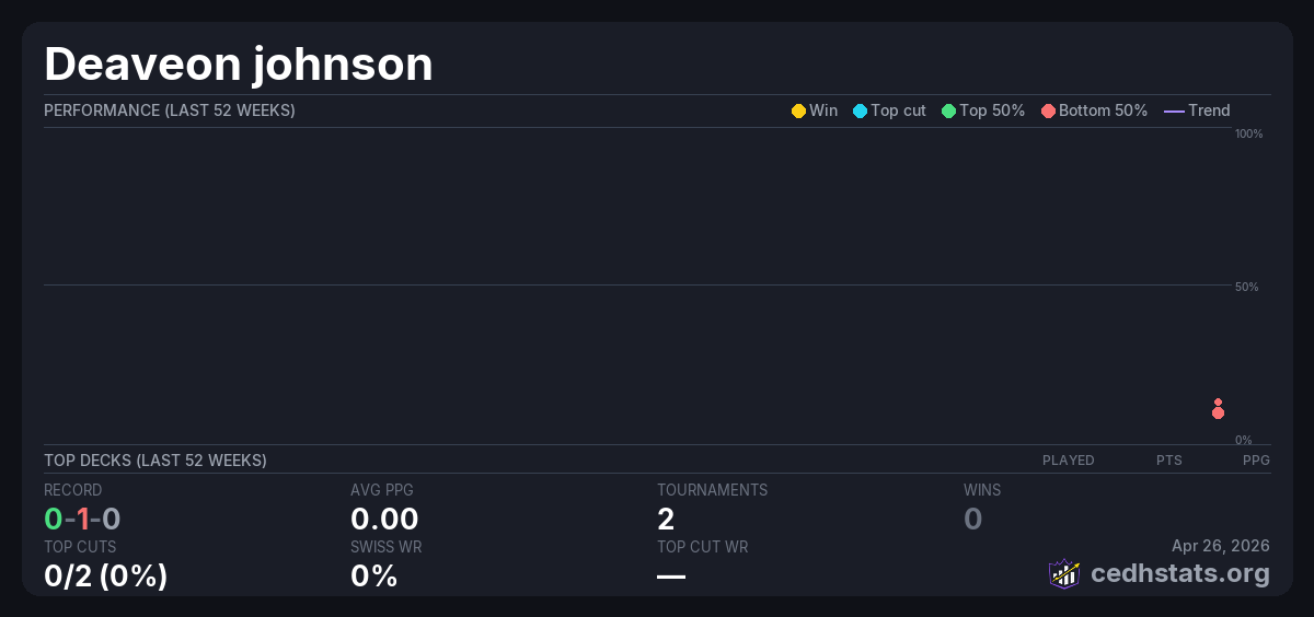 | TITANS OF THE UNDERGROUND - SEASON 2 ROUND 2 Apr 25, 2026 · 47 players | — | 44/47 | 0-0-0 | 0.00 | — |