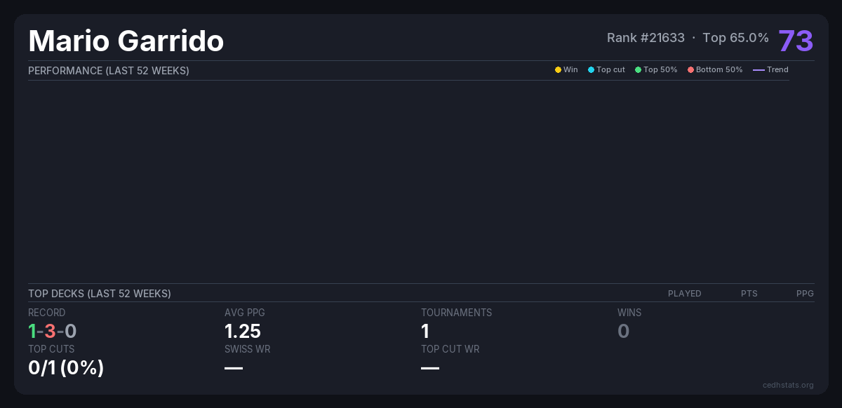 | Reino de Bolsillo 12-Abril Apr 12, 2026 · 20 players | 10/20 | 1-3-0 | 1.25 | 73 |