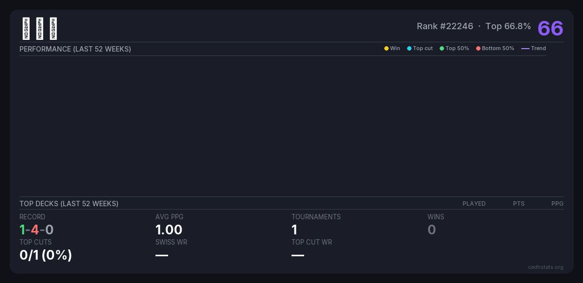| Tournament | Deck | Result | Record | PPG | Points ? |