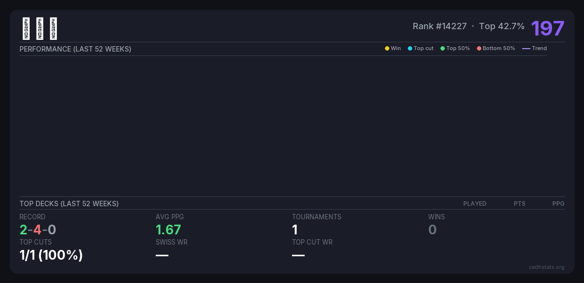 | Tournament | Deck | Result | Record | PPG | Points ? |