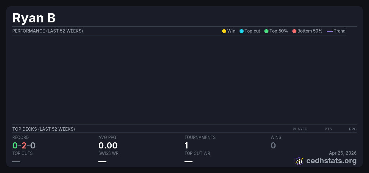 | Tournament | Deck | Result | Record | PPG | Points ? |