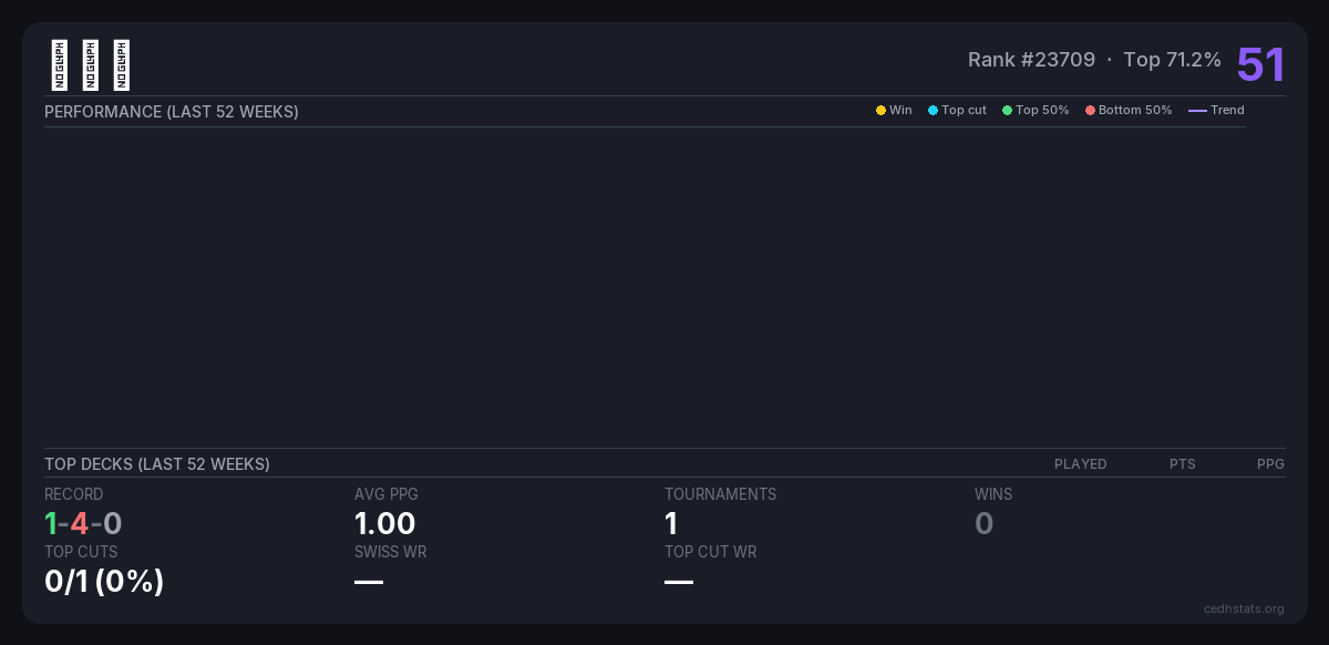 | CommandFest Beijing 2025 Aug 16, 2025 · 60 players | Invalid pairing | 38/60 | 1-4-0 | 1.00 | 51 |