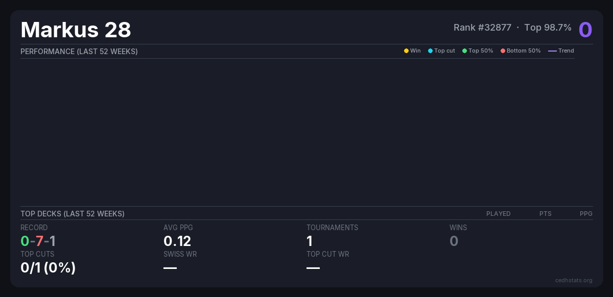 | Zum Waschbären Test Event 2 Oct 21, 2025 · 50 players | Invalid pairing | 50/50 | 0-7-1 | 0.12 | 0 |