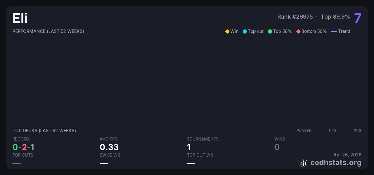 | Commander League 3 week 3 Feb 21, 2026 | 15/17 | 0-2-1 | 7 | |