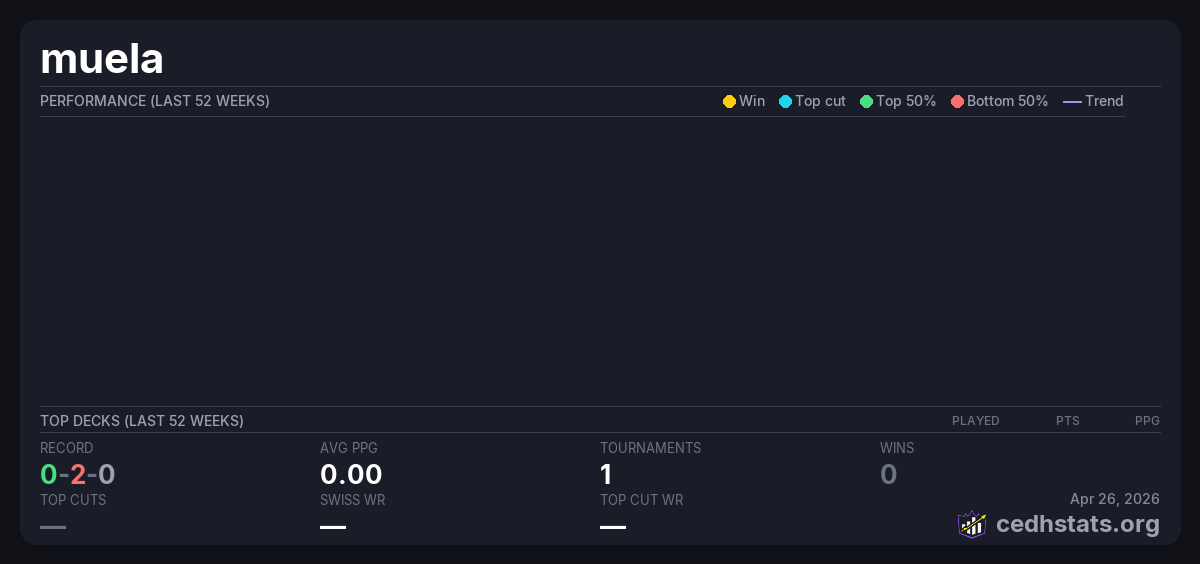 | Liga Jan 2-3 Jan 19, 2026 · 17 players | 2/17 | 0-2-0 | 0.00 | — |