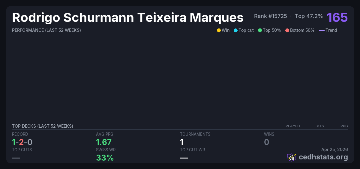 | Tournament | Deck | Result | Record | PPG | Points ? |