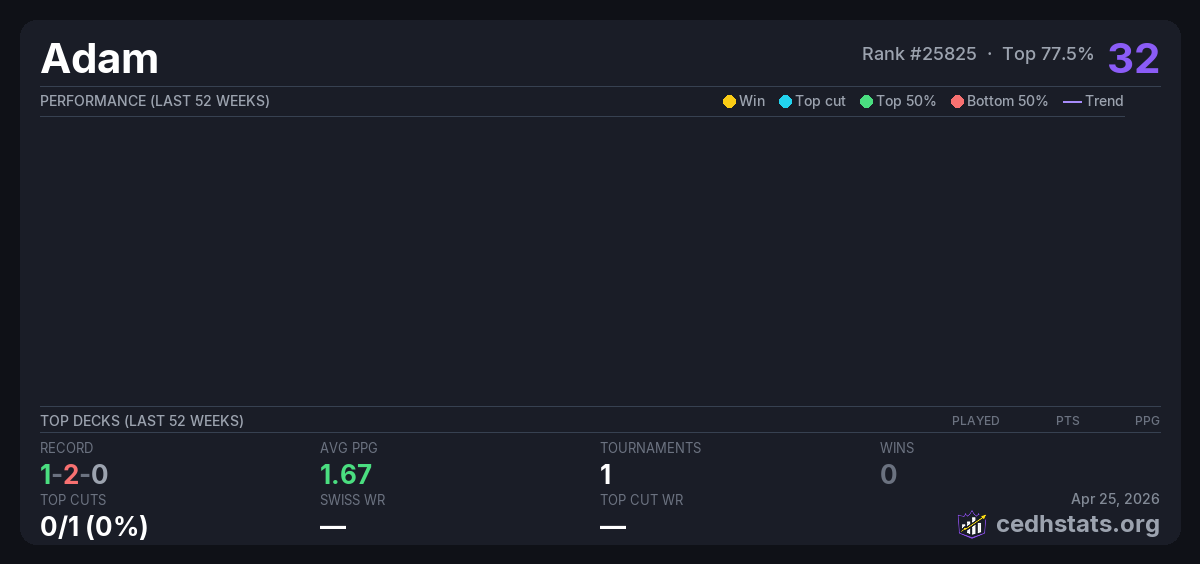 | Tournament | Deck | Result | Record | PPG | Points ? |