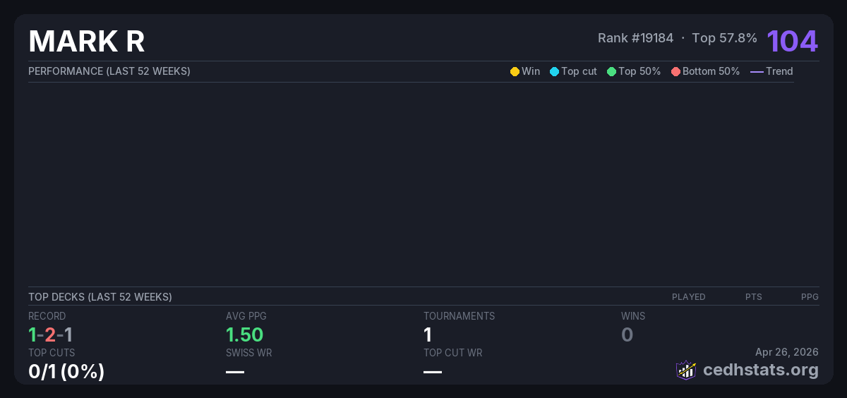 | CEDH SATURDAY Jul 12, 2025 | Invalid pairing | 6/16 | 1-2-1 | 104 |