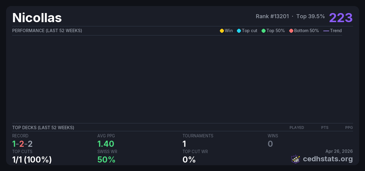 | Commander 500 - 2K - 25-04-2026 Apr 25, 2026 | — | 7/24 | 1-2-2 | 223 |