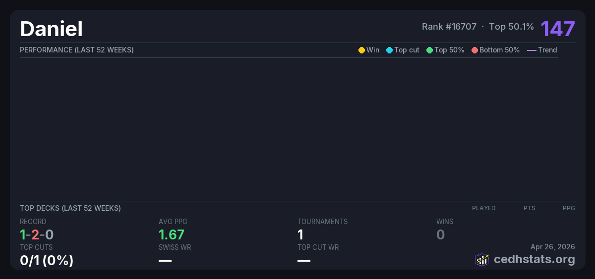 | Tournament | Deck | Result | Record | PPG | Points ? |