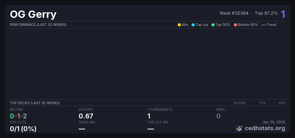 | Tournament | Deck | Result | Record | PPG | Points ? |