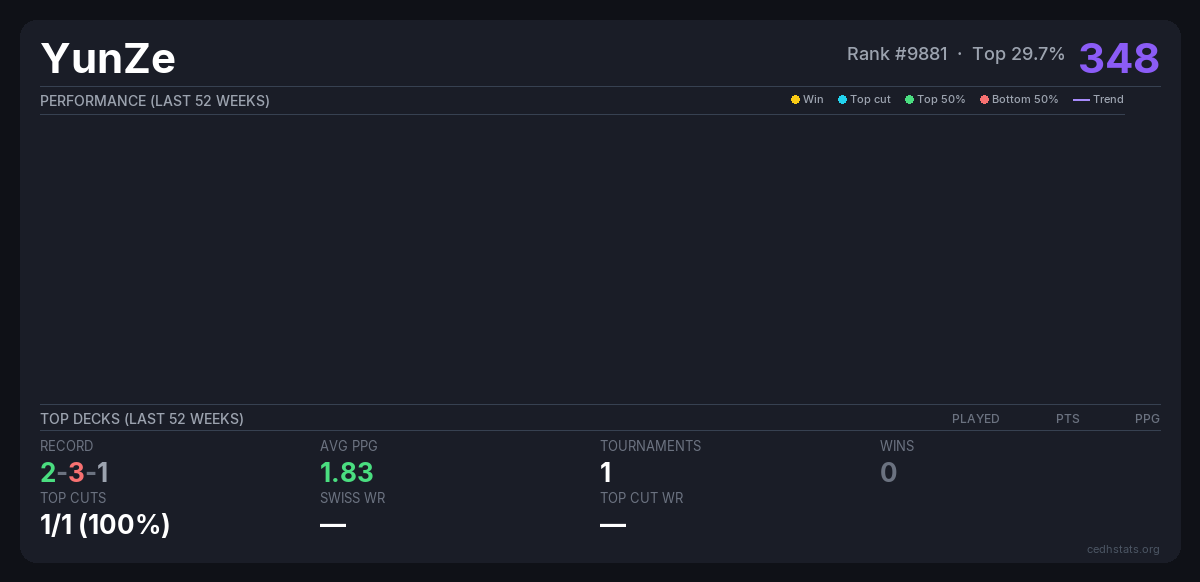 | 2025.10.25 广州CF cEDH Oct 25, 2025 | Invalid pairing | 11/80 | 2-3-1 | 348 |