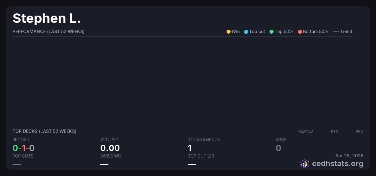 | CMFNM Aug 02, 2025 · 39 players | — | 32/39 | 0-1-0 | 0.00 | — |