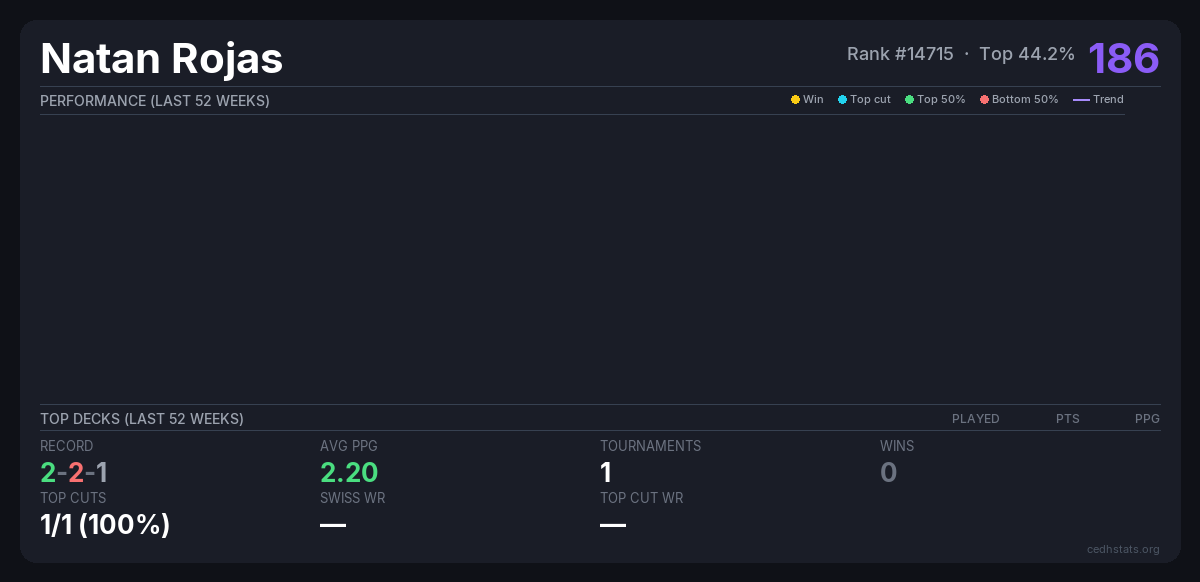| Reino de Bolsillo 12-Abril Apr 12, 2026 · 20 players | 4/20 | 2-2-1 | 2.20 | 186 |