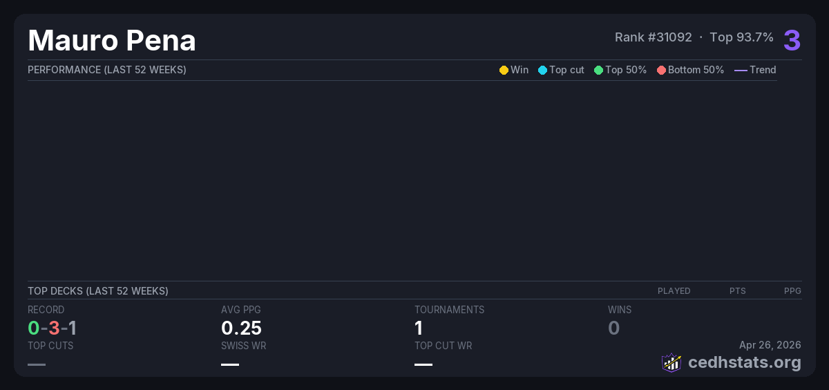 | Tournament | Deck | Result | Record | PPG | Points ? |
