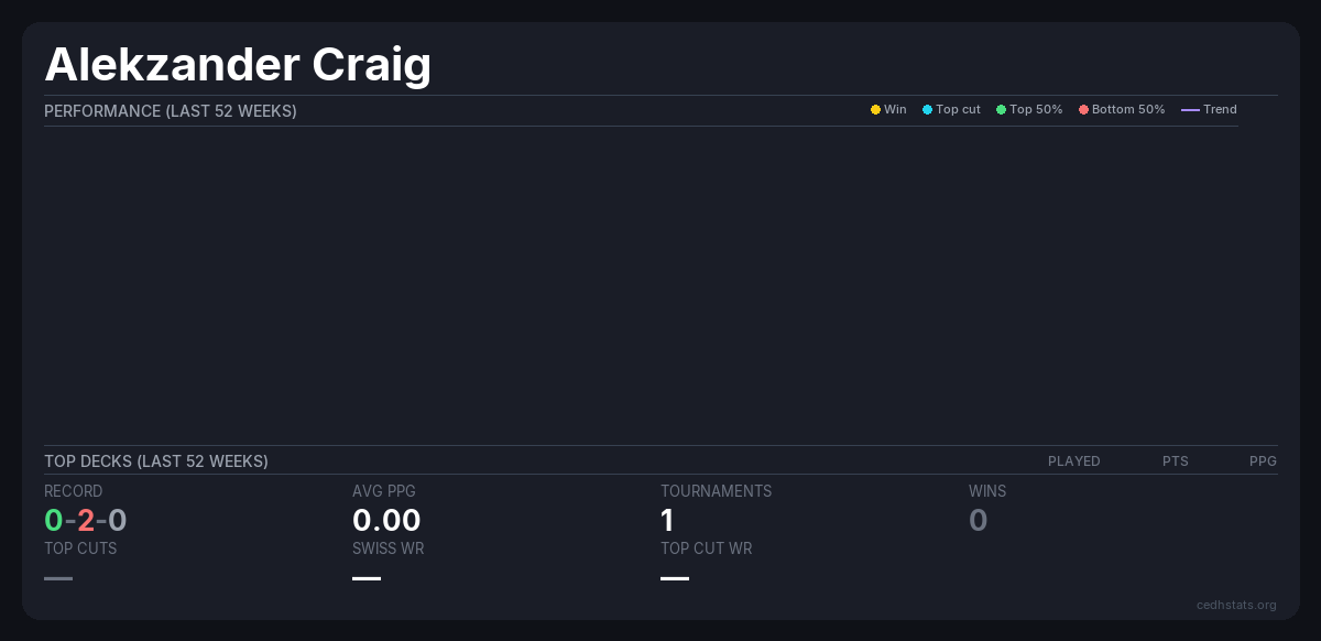 | Bracket 3 Mar 29, 2026 · 22 players | 19/22 | 0-2-0 | 0.00 | — |