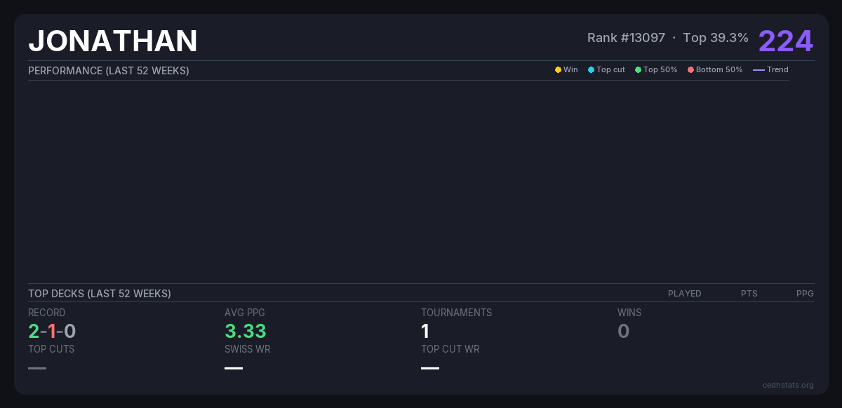 | Friday Night Commander Apr 11, 2026 | 2/17 | 2-1-0 | 224 | |