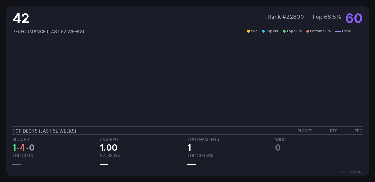 | Tournament | Deck | Result | Record | PPG | Points ? |
